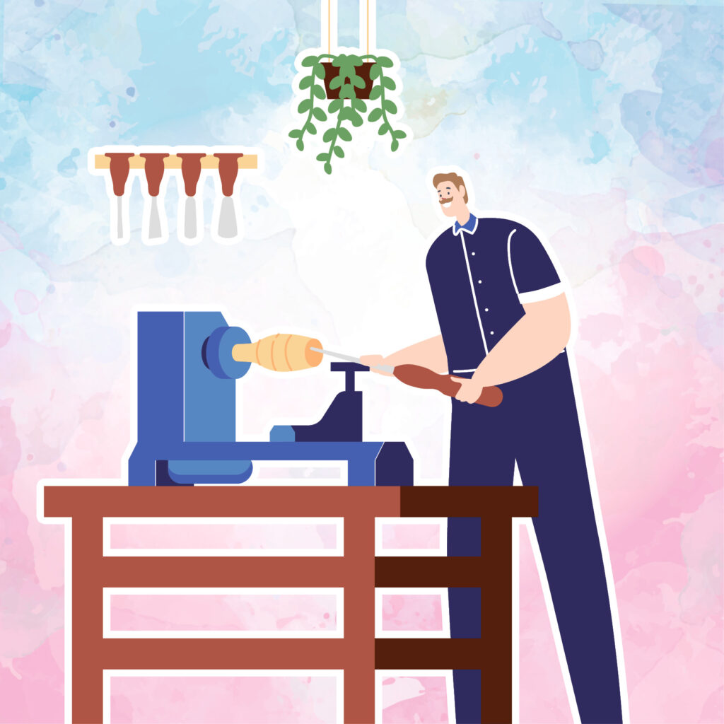 Drechsler/Elfenbeinschnitzer m/w/d der Fachrichtung Drechseln stellen nach vorgegebenen oder selbst gefertigten Skizzen und Zeichnungen Produkte wie Klein- und Sitzmöbel, Schubladenknöpfe, Holzlöffel oder Treppengeländer her. Der typische Werkstoff für sie ist Holz, aber auch Kunststoff oder Edelwerkstoffe, wie Elfenbein oder Horn, können zu den Arbeitsmaterialien gehören.