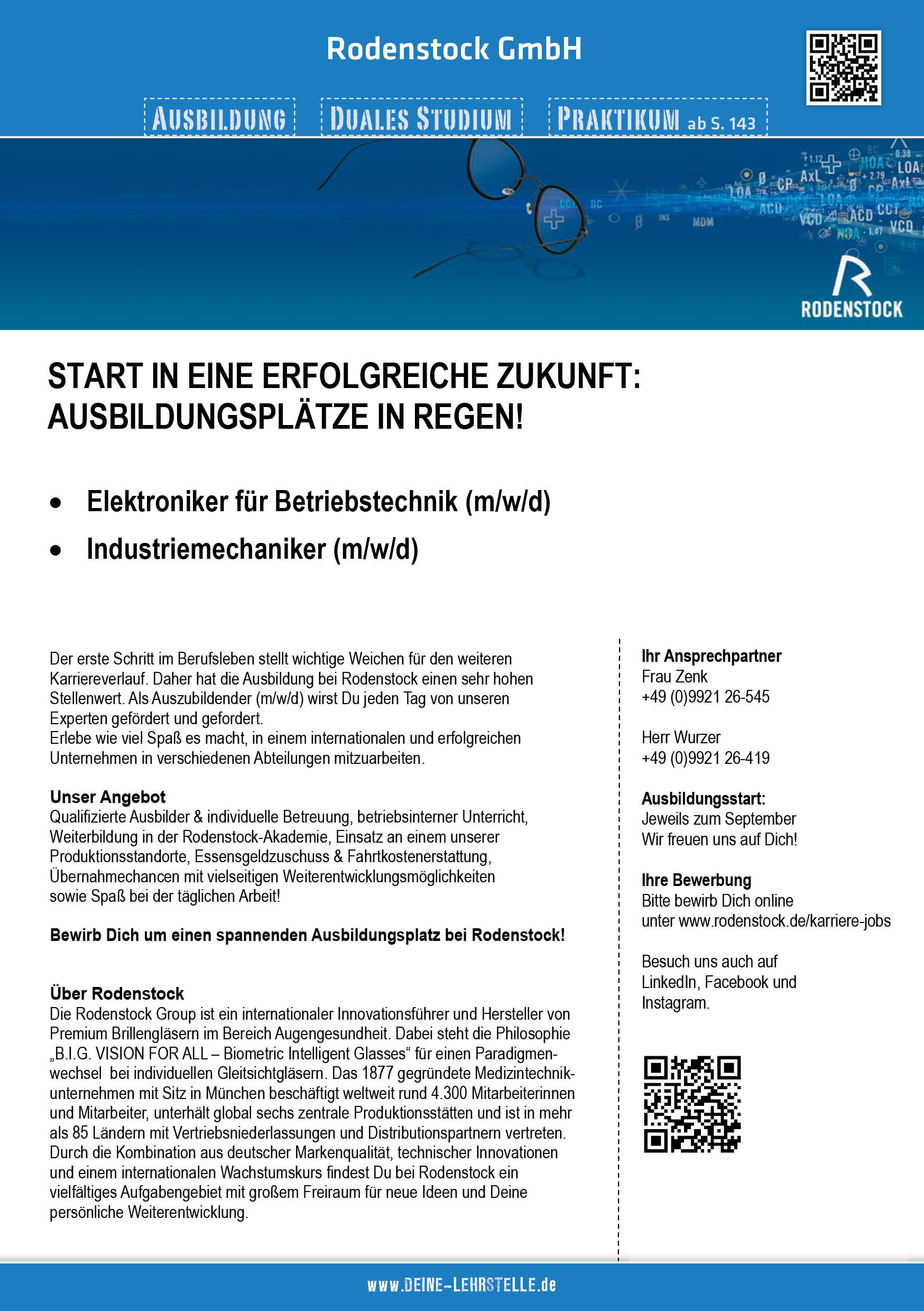 Das macht die Ausbildung bei Rodenstock in Regen aus: