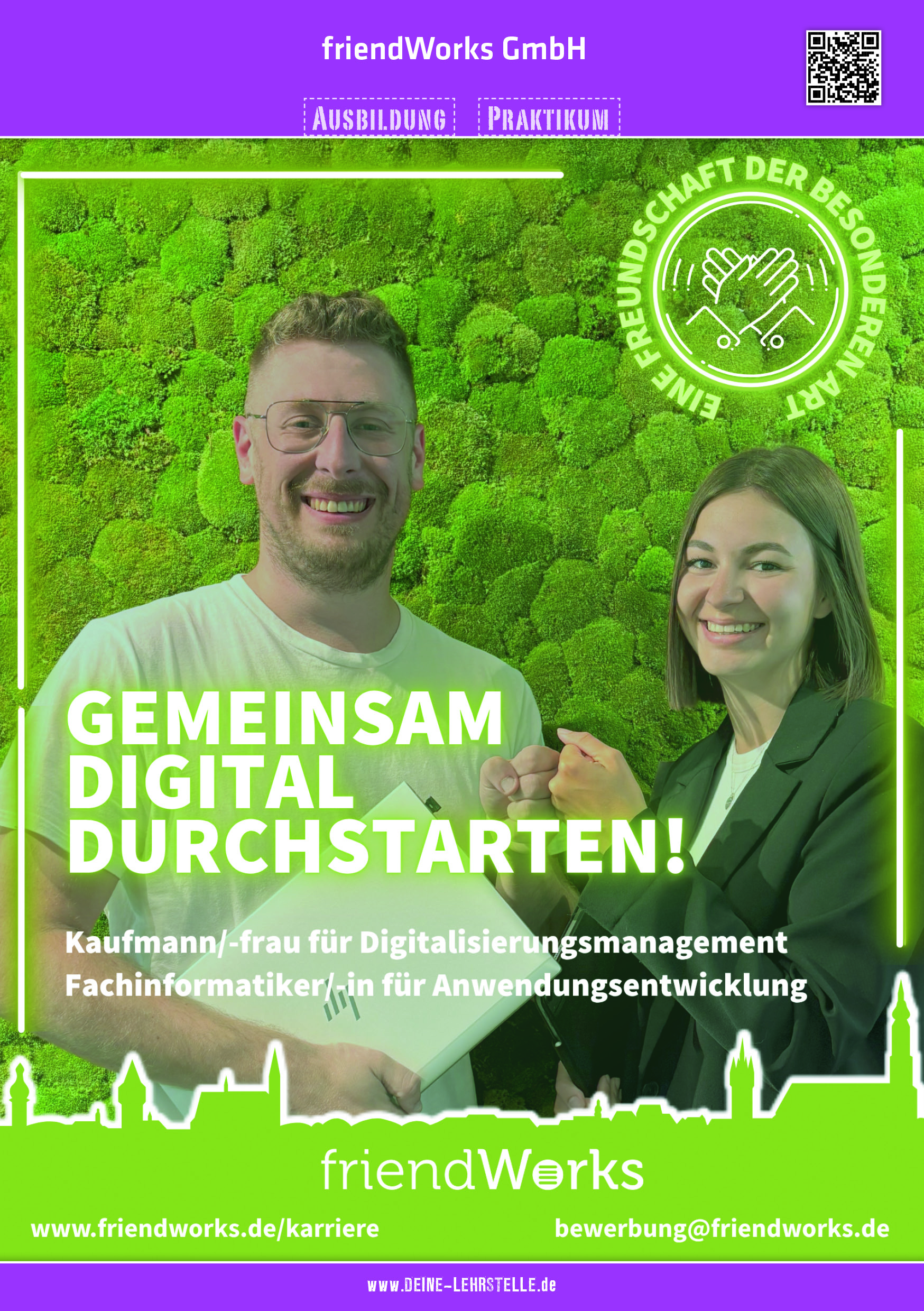 Wenn du diesen Satz von Stephen Hawking lesen kannst, bist du bei uns genau richtig und wir zeigen dir, wie wir die Geschäftsprozesse unserer Kunden von HEUTE für MORGEN digitalisieren. Komm ab dem Ausbildungsjahr 2026 in unser Team und werde Teil der friendWorks!