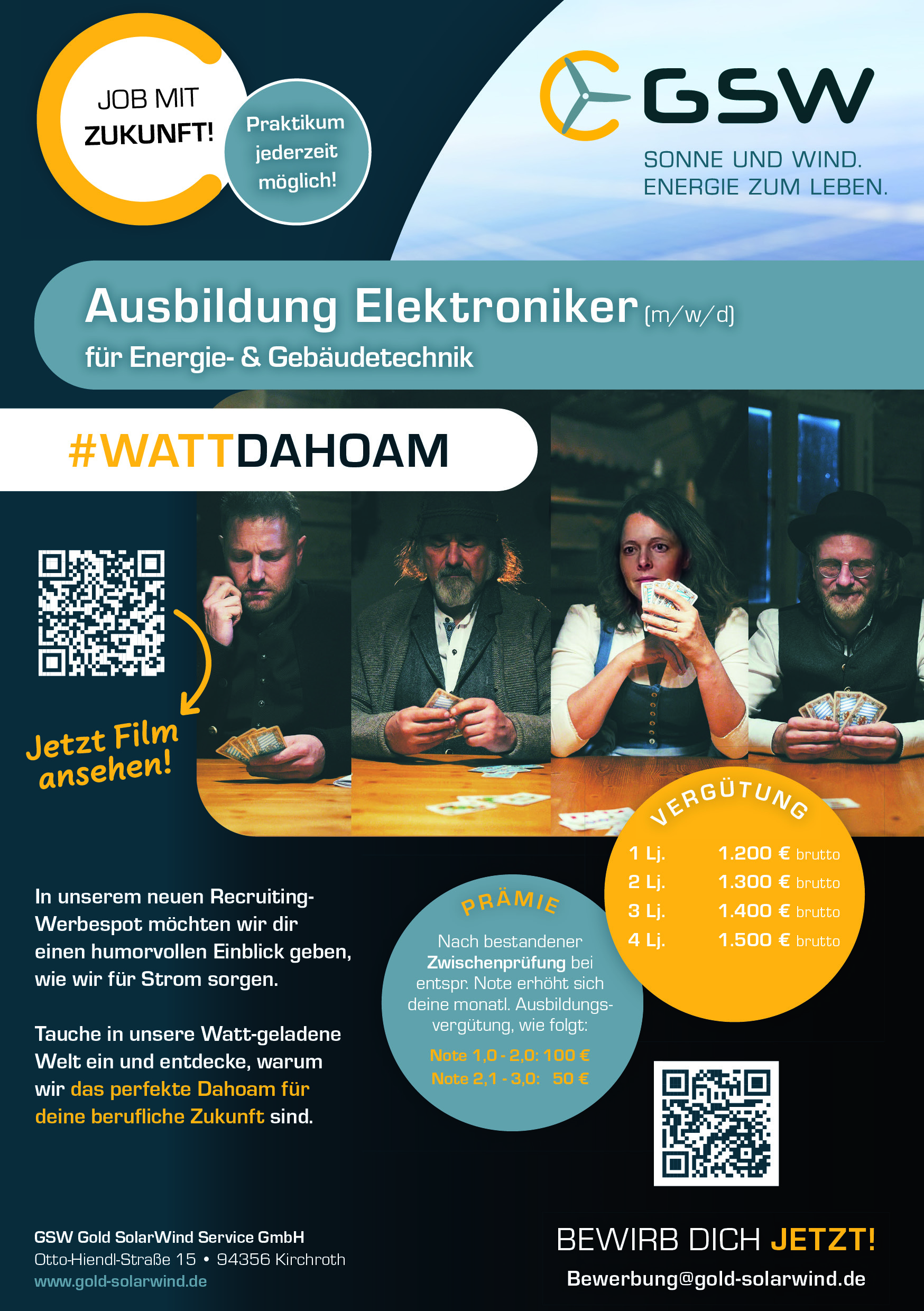 • Du erhältst während deiner dreieinhalbjährigen Ausbildung umfassende Einblicke in die Aufgabenbereiche der Elektro- und Energietechnik