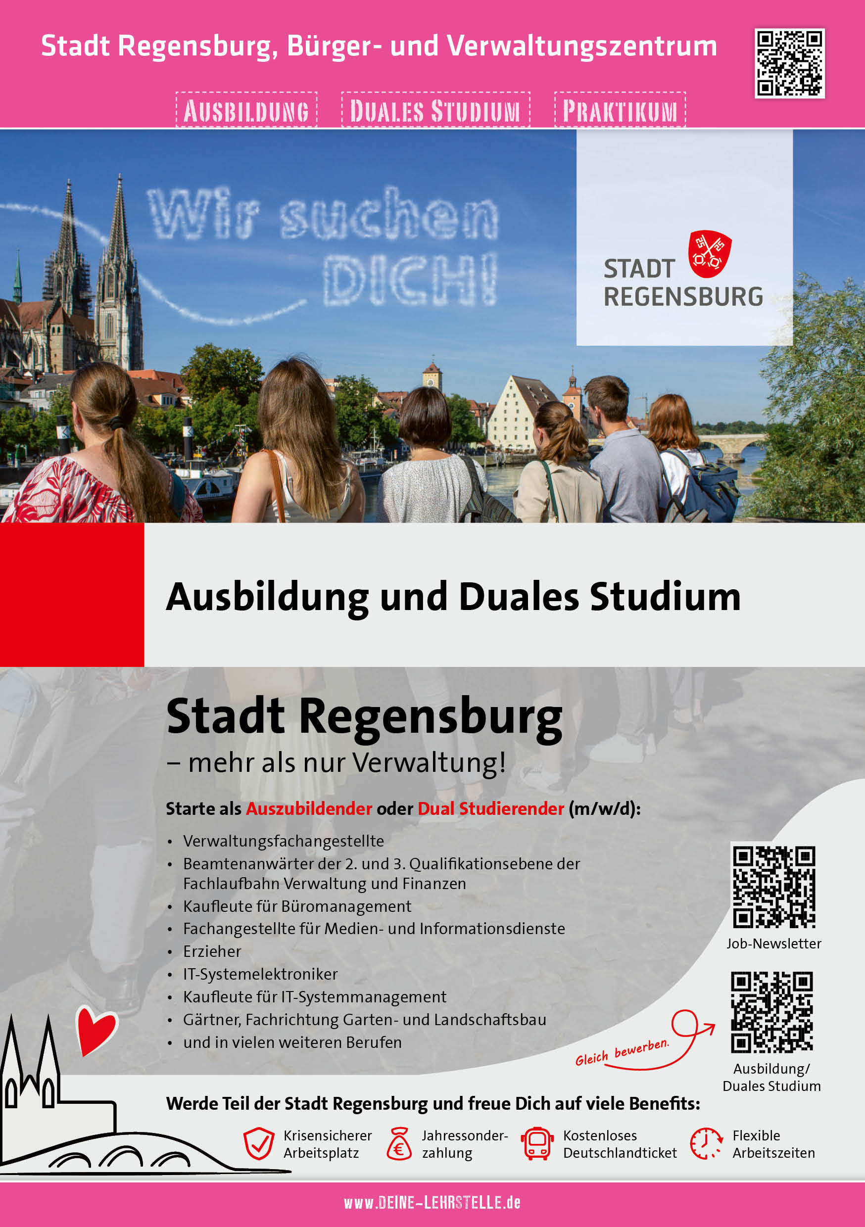 - Erfolgreiche Teilnahme am Einstellungstest und Auswahlverfahren der Stadt Regensburg