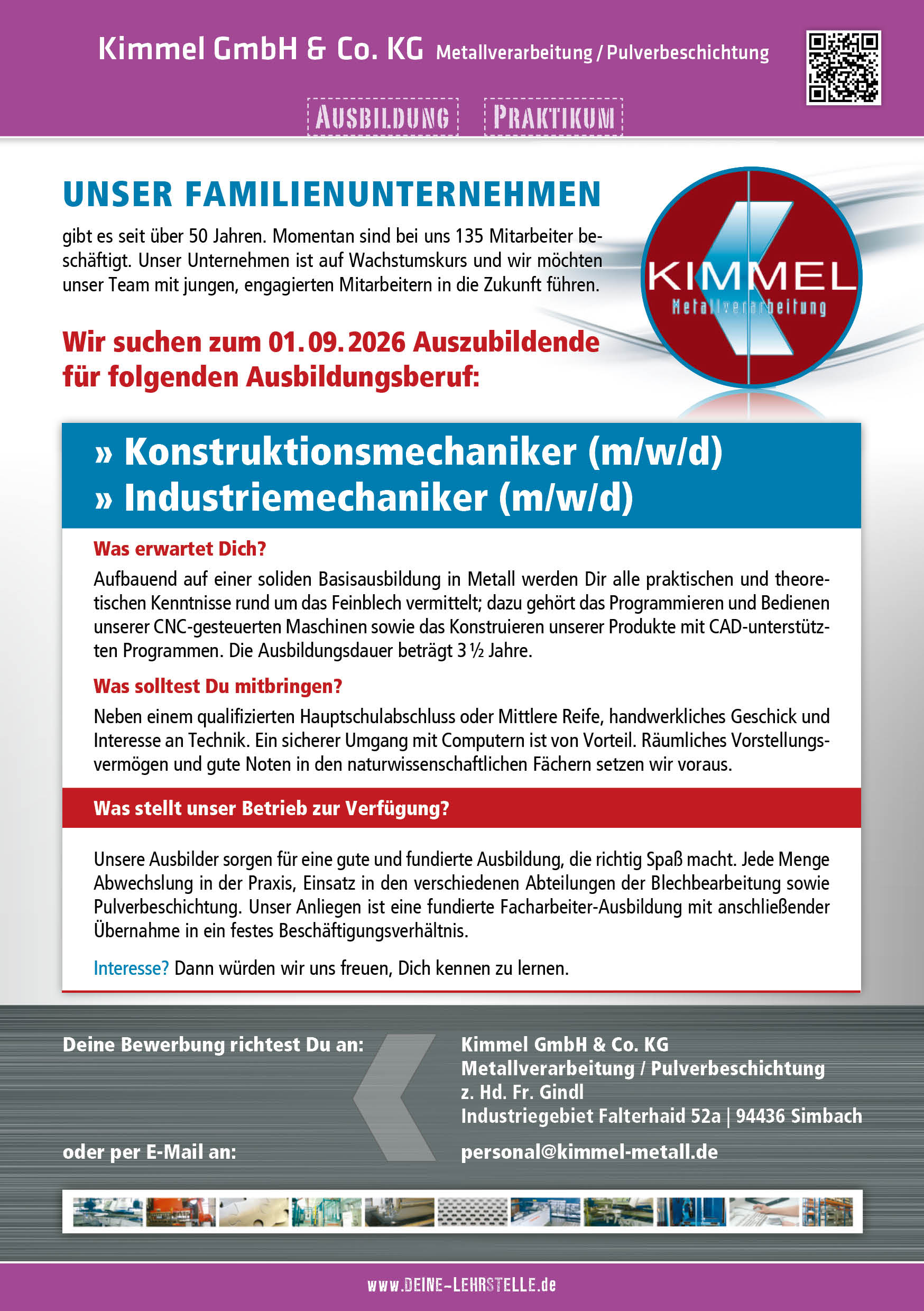 • Bei erfolgreichem Abschluss der Ausbildung eine Übernahme in ein festes Beschäftigungsverhältnis