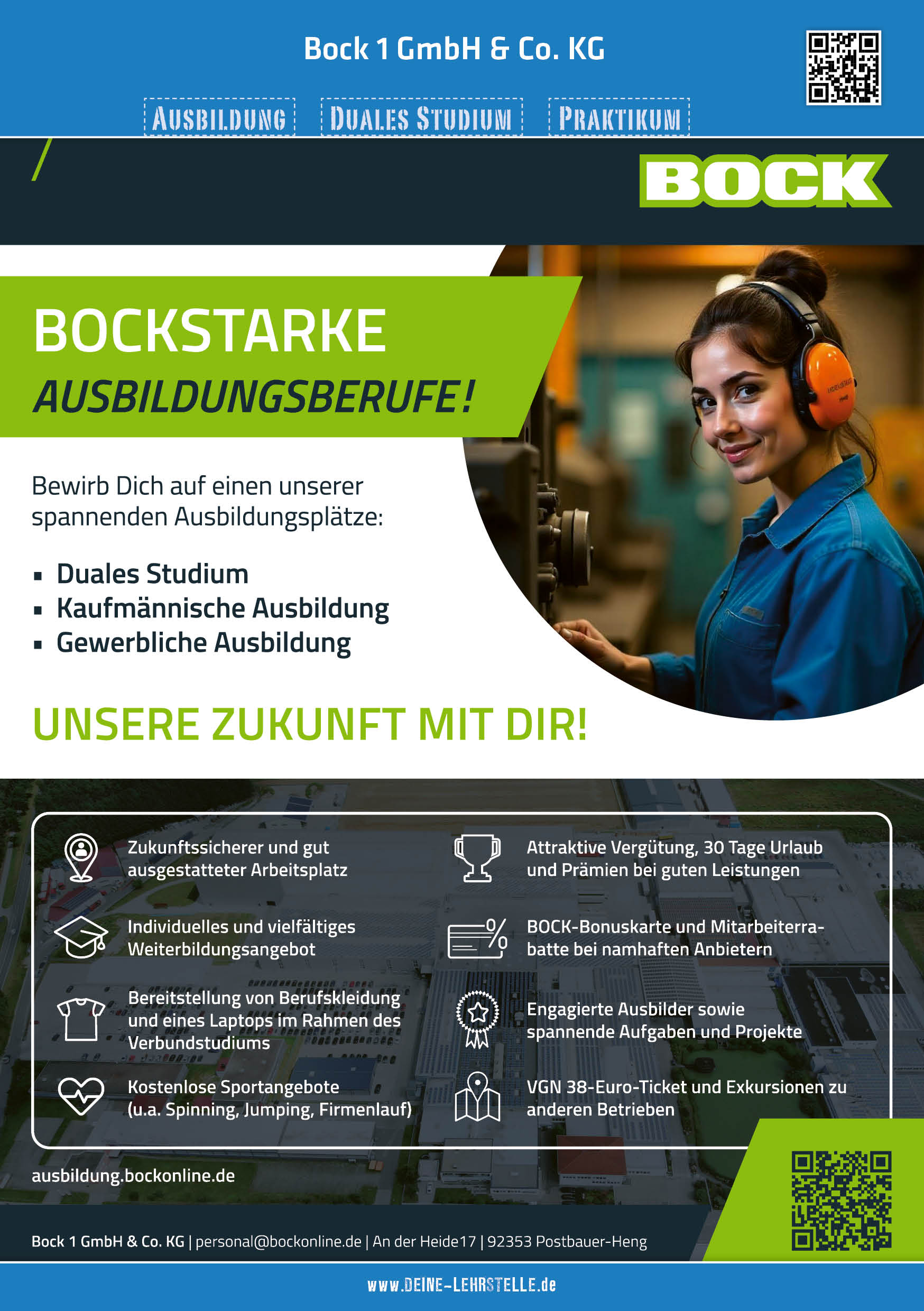 Bewirb Dich auf einen unserer spannenden Ausbildungsplätze als Kunststoff- und Kautschuktechnologe m/w/d bei der Bock 1 GmbH & Co. KG.