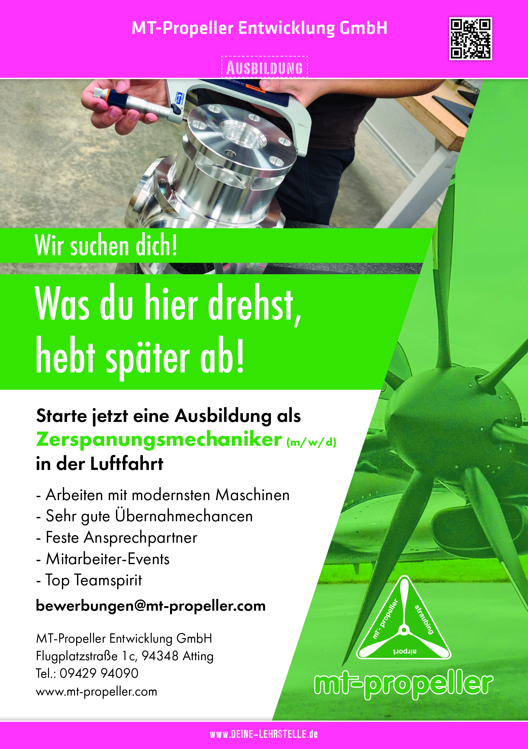 Als Zerspanungsmechaniker/in lernst du bei uns in 3,5 Jahren alles über die Herstellung hochpräziser Metallbauteile für Propeller und Antriebssysteme.