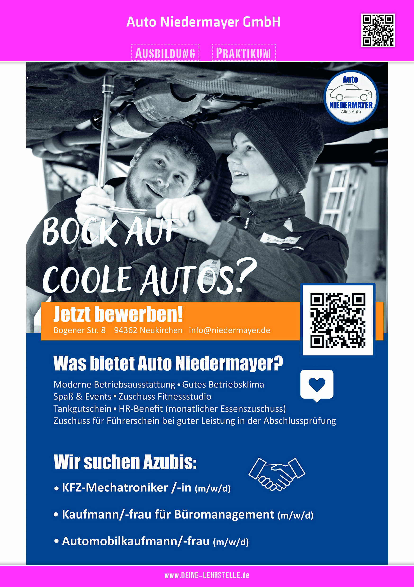 Du bist freundlich und offen, arbeitest gerne im Team und interessiert Dich für Autos? Dann bewirb Dich bei uns und starte Deine Ausbildung als Kfz-Mechatroniker m/w/d!