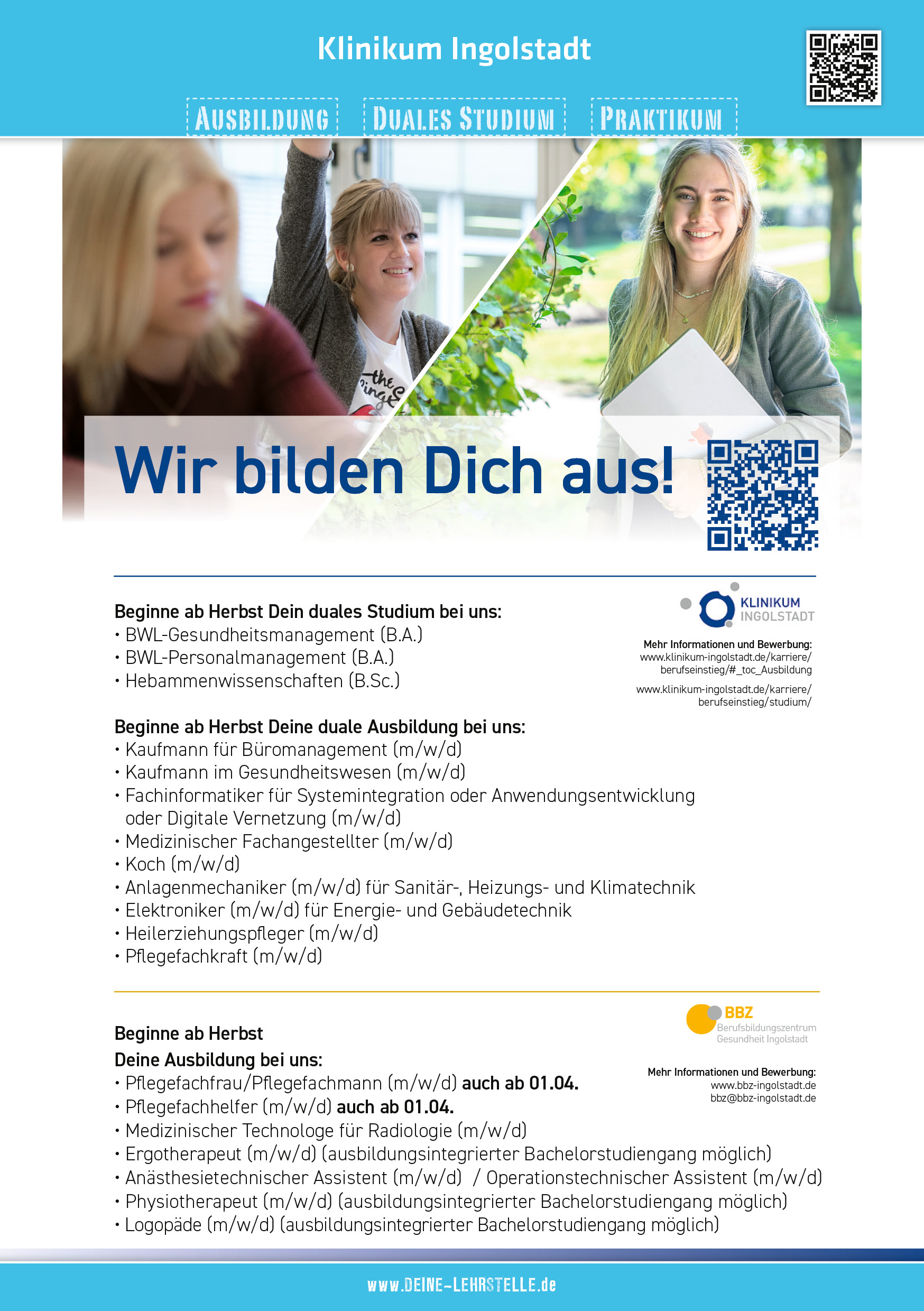 Das BBZ Ingolstadt fordert zum Start der Pflegefachhelfer-Ausbildung diese Zugangsvoraussetzungen, die mit der Bewerbung einzureichen sind: