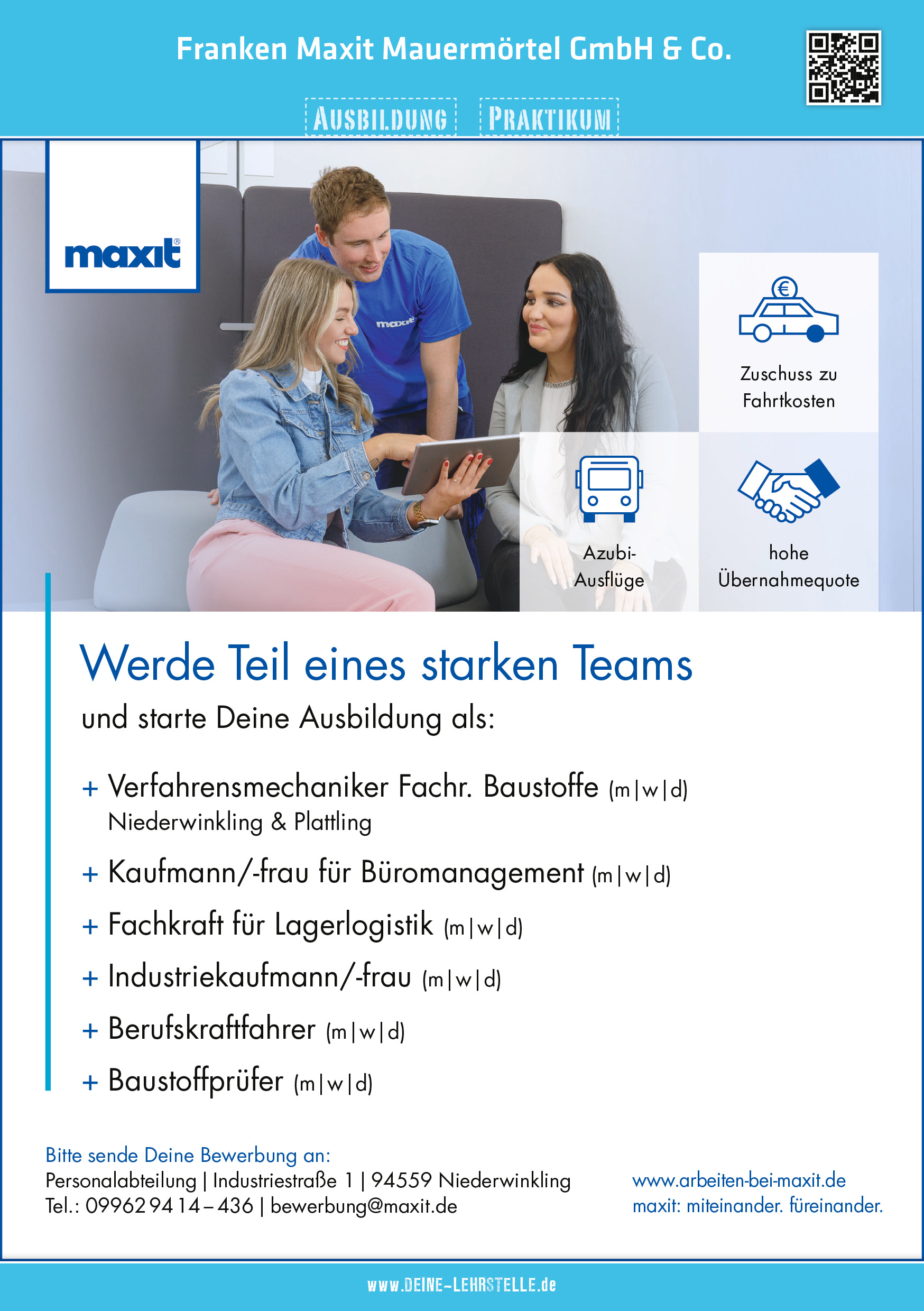 Aus Tradition entsteht bei uns Innovation. Wir sind ein familiengeführtes, mittelständisches Unternehmen mit 9 Standorten und etwa 800 Mitarbeitenden. Gemeinsam entwickeln und produzieren wir erfolgreich innovative Produkte. Trotz unserer Größe bieten wir Dir ein familiäres Betriebsklima. Davon kannst Du Dich gern persönlich überzeugen – während Deiner Ausbildung oder im Vorfeld bei einem Praktikum.