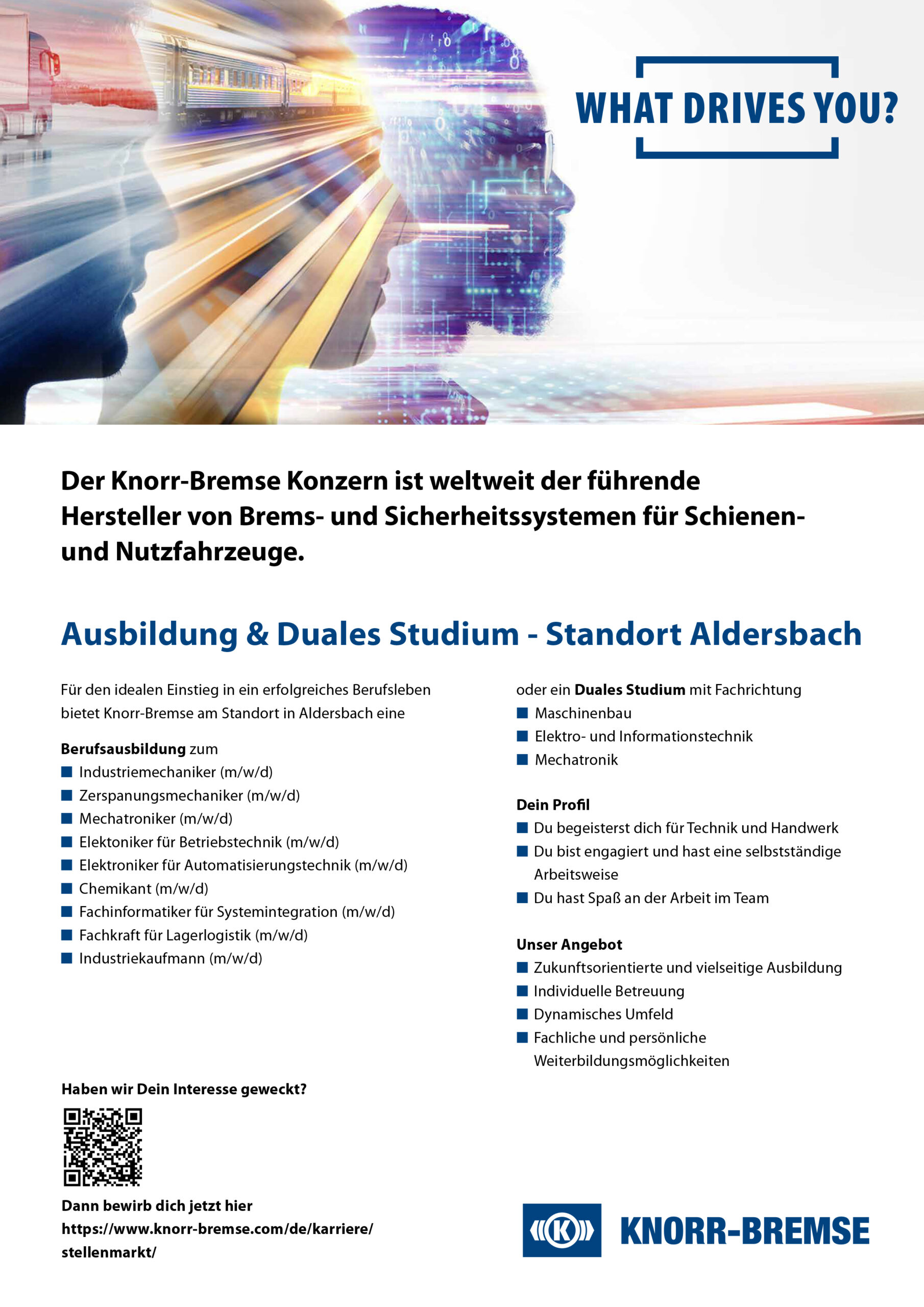 Die Produkte von Knorr-Bremse leisten weltweit einen maßgeblichen Beitrag zu mehr Sicherheit und Energieeffizienz auf Schienen und Straßen. Rund 31.500 Mitarbeiter an über 100 Standorten in mehr als 30 Ländern setzen sich mit Kompetenz und Motivation ein, um Kunden weltweit mit Produkten und Dienstleistungen zufriedenzustellen. Im Jahr 2022 erwirtschaftete Knorr-Bremse in seinen beiden Geschäftsdivisionen weltweit einen Umsatz von 7,1 Mrd. EUR. Seit mehr als 115 Jahren treibt das Unternehmen als Innovator in seinen Branchen Entwicklungen in den Mobilitäts- und Transporttechnologien voran und hat einen Vorsprung im Bereich der vernetzten Systemlösungen. Knorr-Bremse ist einer der erfolgreichsten deutschen Industriekonzerne und profitiert von den wichtigen globalen Megatrends: Urbanisierung, Nachhaltigkeit, Digitalisierung und Mobilität.